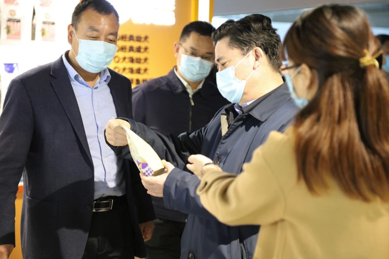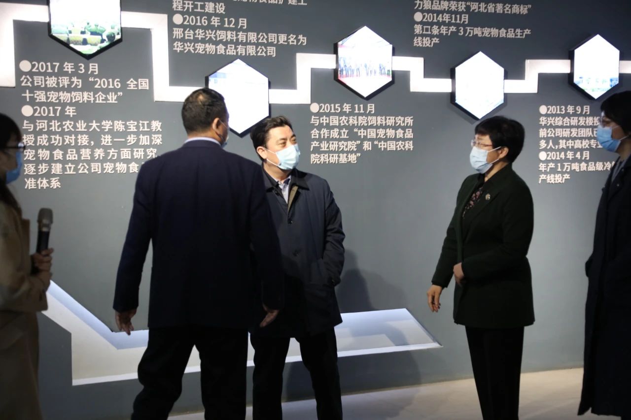 參觀指導過程中,統(tǒng)戰(zhàn)部部長冉萬祥與冀葉軍董事長親切交談,了解生產(chǎn)復工過程中遇到的問題。冉萬祥了解華興寵物食品的發(fā)展歷程